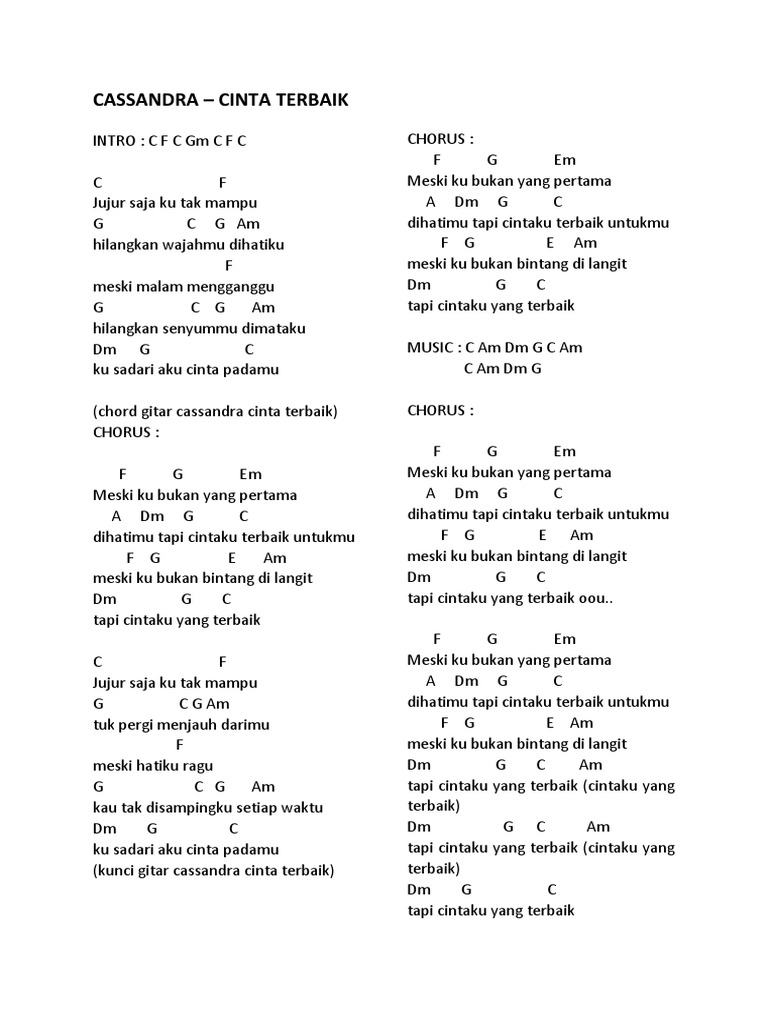 Lirik Dan Chord Lagu Cinta Terbaik Milik Cassandra Halaman All Kompas Com from asset.kompas.com We did not find results for: Jujur saja ku tak mampu chord. Check spelling or type a new query. Maybe you would like to learn more about one of these?